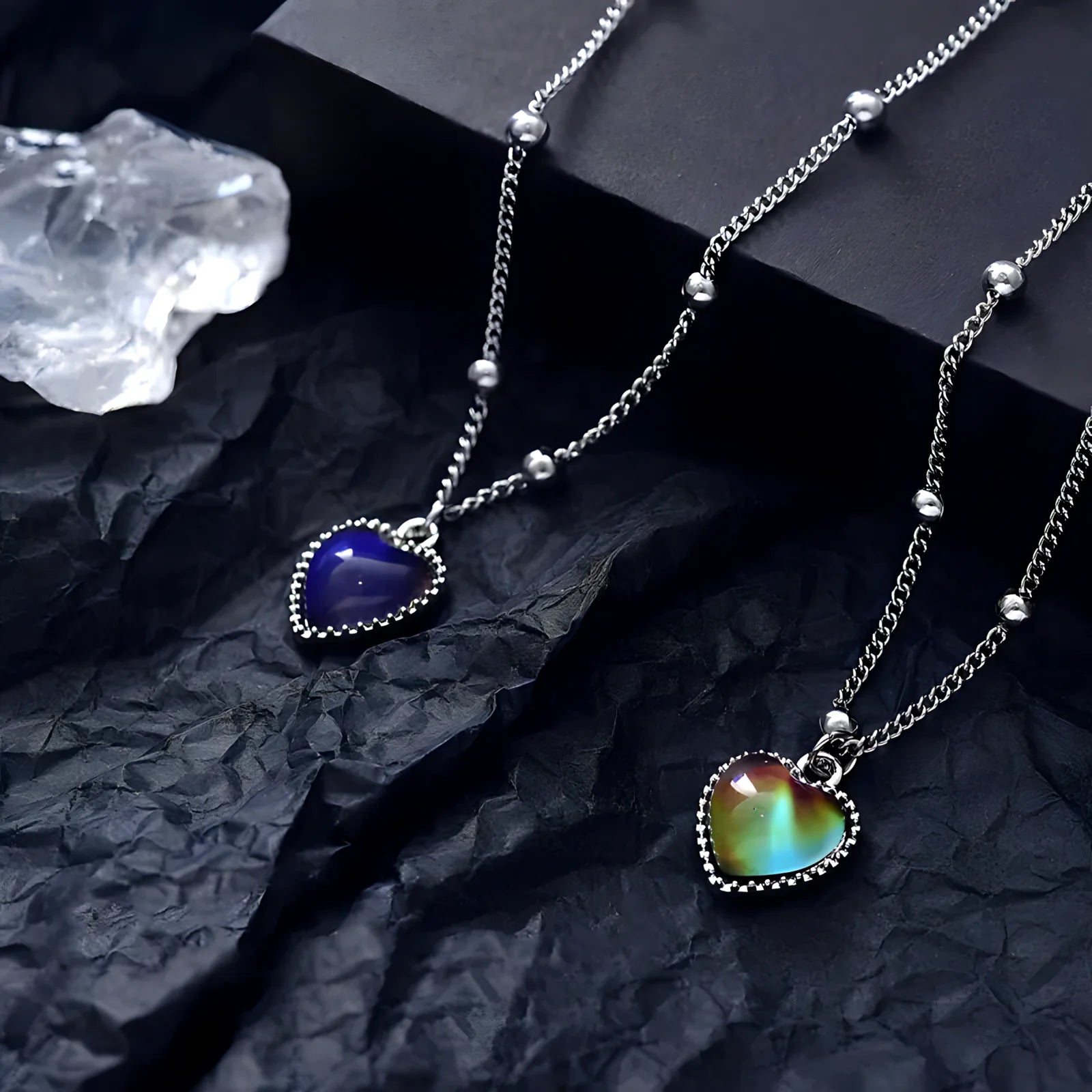 Sensible a la temperatura para mostrar una paleta de colores que corresponde a diferentes estados emocionales. Cada vez que lo usas, podrás ver cómo cambia de color, revelando tu estado de ánimo actual.