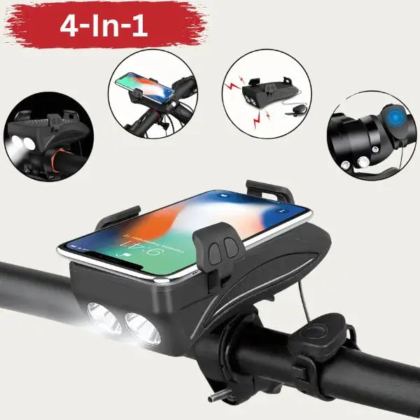 BIKELAMP® 4 en 1 Lámpara , Bocina ,soporte para teléfono y Batería recargable.