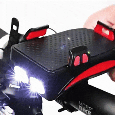 BIKELAMP® 4 en 1 Lámpara , Bocina ,soporte para teléfono y Batería recargable.