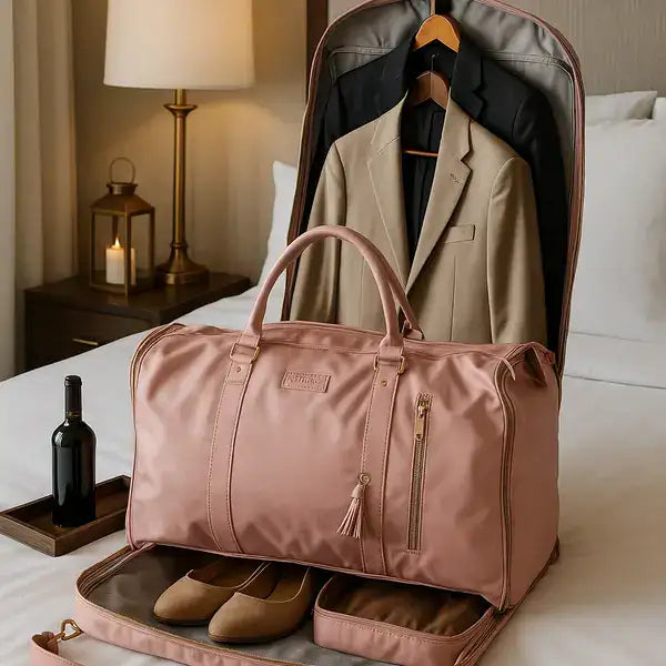 Mantén impecables más de 5 trajes, vestidos o trajes formales: se acabaron las pesadillas del planchado en el hotel. La sección de ropa protege tu ropa, mientras que la bolsa de lona guarda zapatos, accesorios y más.