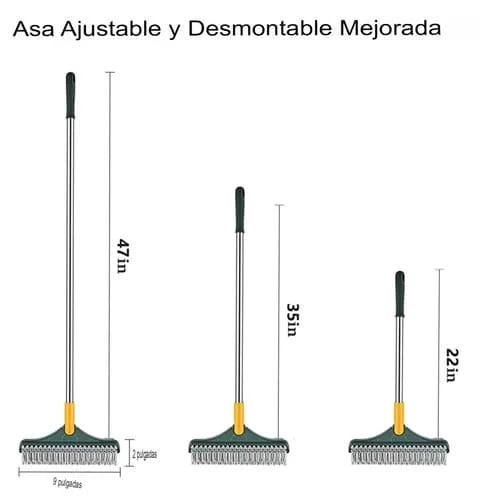 Cepillo para pisos 3 en 1 con escobilla de goma: Este cepillo de mango largo permite usar la parte posterior de la barra raspadora para eliminar las aguas residuales después de barrer. Al fregar y cepillar el piso, simplemente limpie y seque.