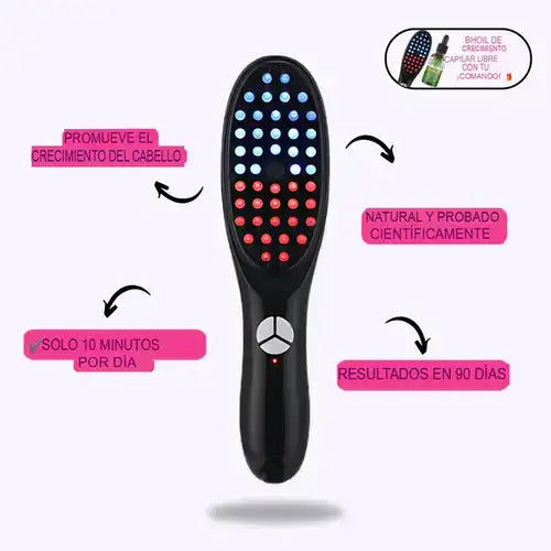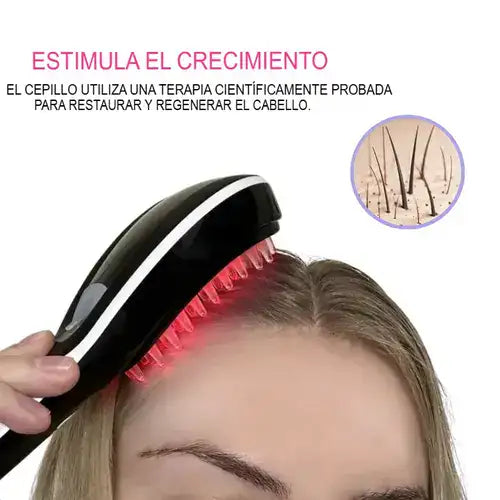 El primer cepillo de terapia capilar respaldado por la ciencia que ayuda a estimular el crecimiento de cabello más grueso y denso desde la raíz.