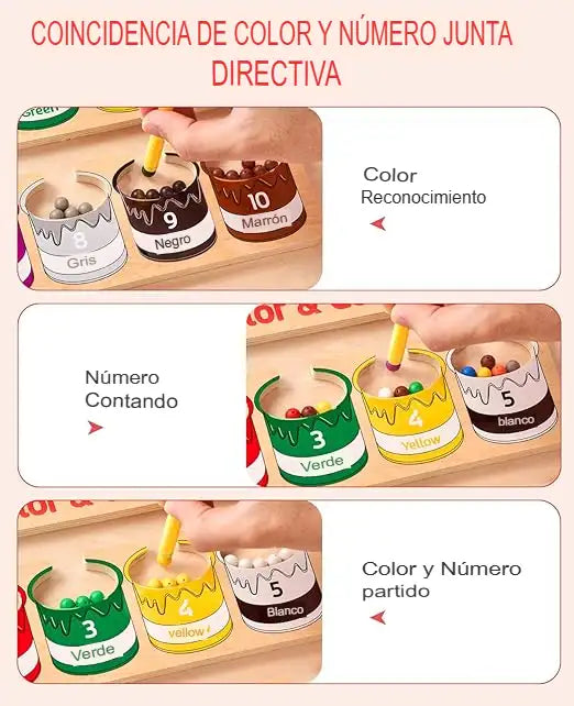 Potencie la independencia de su hijo explorando la clasificación de colores, conteo, el inglés y la resolución de problemas a su propio ritmo, como en un aula Montessori real ¡Míralos florecer con confianza! 🌟