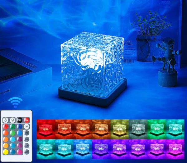 La lámpara AquaLumen presenta 16 colores vibrantes, tiene una función de control remoto RGB y se conecta a la luz cómodamente mediante USB.