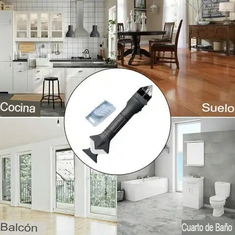 3 funciones en 1, incluido un raspador de ángulo interno, un raspador de ángulo plano y un suavizante de silicona Y masilla. Puede ayudarlo para quitar y volver a sellar la junta y reparar el espacio y limpiar fácilmente el pegamento residual.