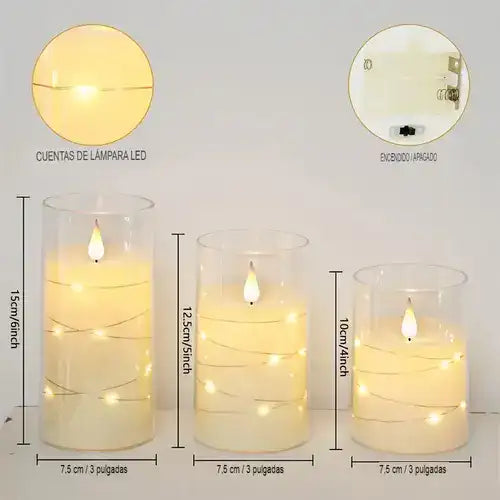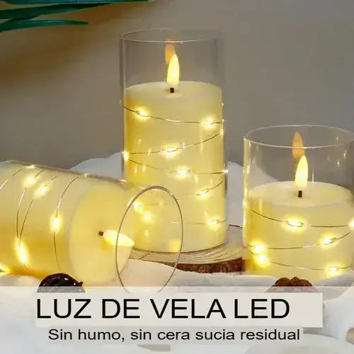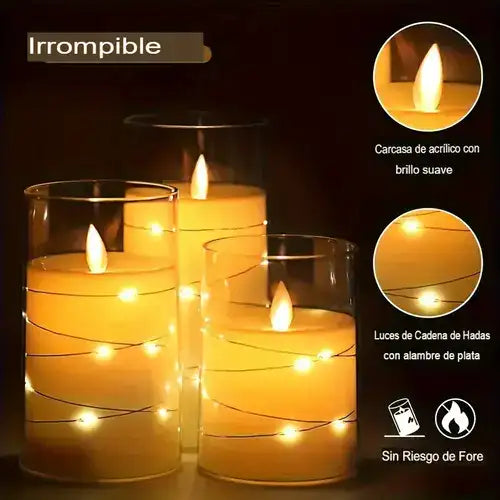 SET X 3 VELAS LED REALISTAS EN ACRÍLICO, FUNCIONA CON 2 PILAS AA