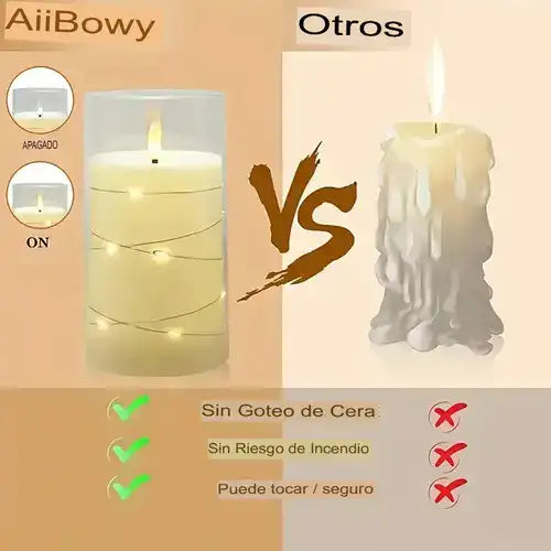 Perfectas para hogares con niños y mascotas, estas velas funcionan con pilas AA eliminando el riesgo de accidentes.